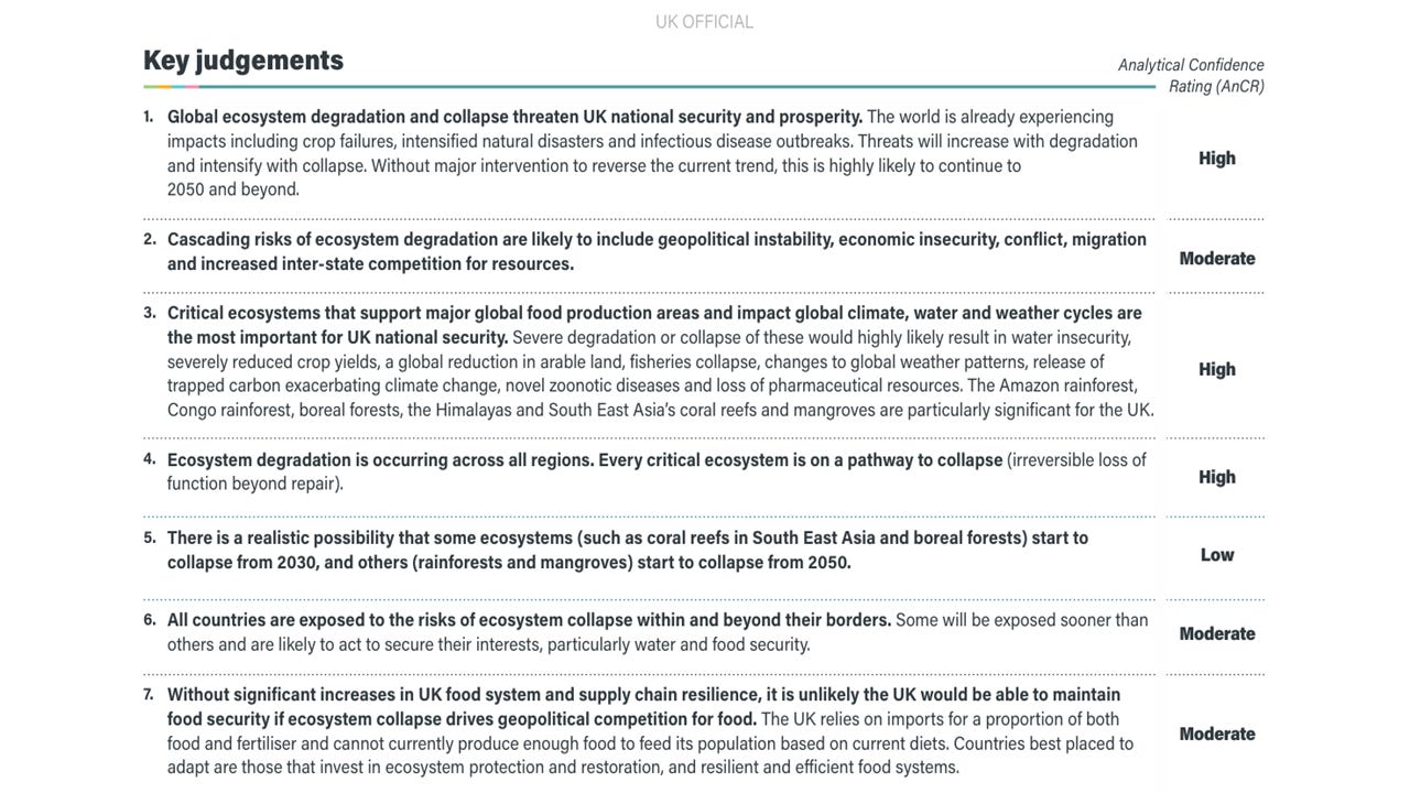 The report makes seven ‘key judgements’ with linked confidence ratings as follows: