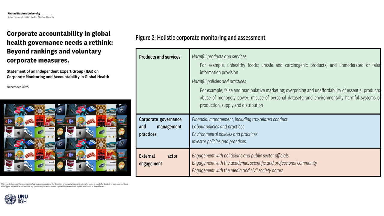 Moving on to the super-important, much-neglected issue of accountability (for commercial determinants), the UNU International Institute of Global Health have just posted these two webinars:
