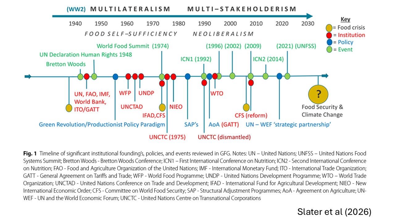 A recent narrative review and literature synthesis by Scott Slater and colleagues asks ‘How has the global food governance system evolved, and what challenges does it currently pose for food systems transformation?’